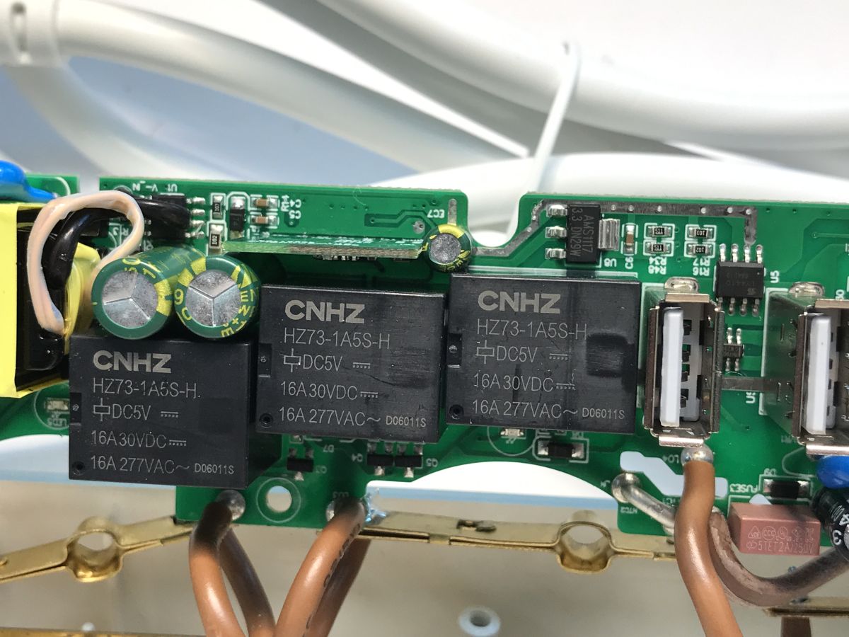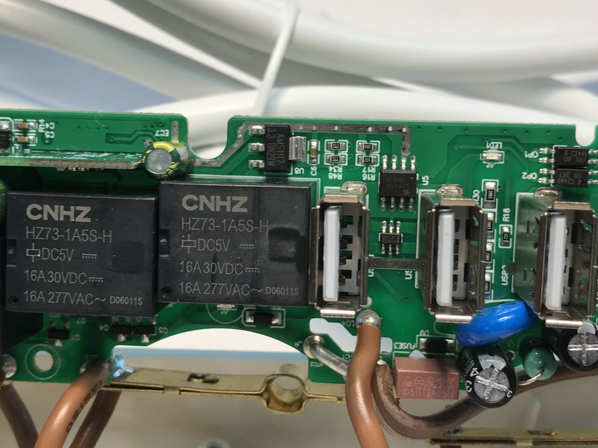 Changing the firmware of this device turned out to be quite easy. It was enough to solder out the Wi-Fi module. Each of the sockets is controlled separately, this is realised based on relays, while the USB ports are switched together based on a MOSFET transistor.