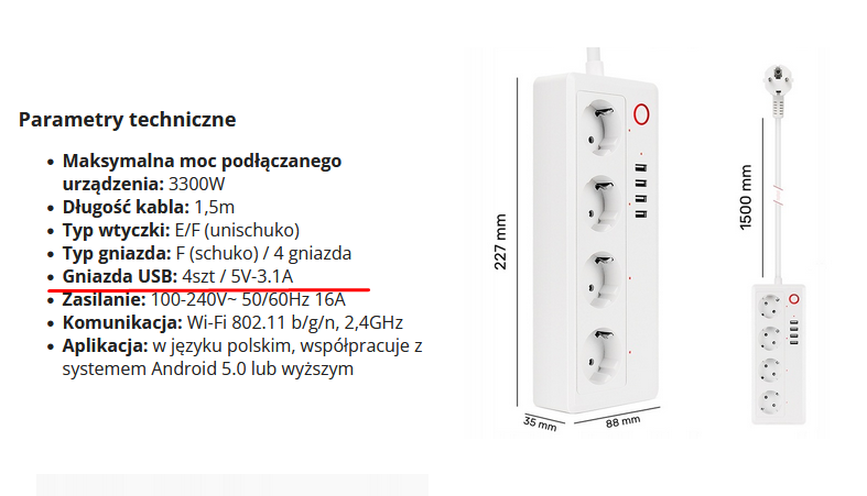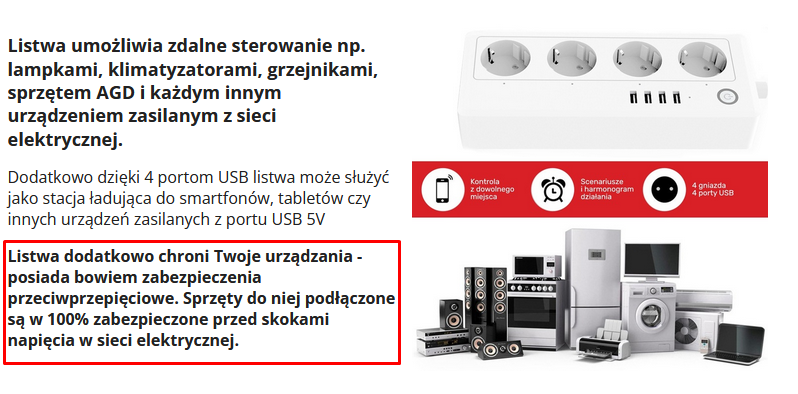 What I don't like is the mention of surge protection ("surge protection"), with this I have my doubts - is this about the varistor in the power supply circuit? Or is it about the fact that if we remotely unplug the device, the surge will not damage it? Additionally, supposedly this protection is "100%", according to the description. Not good. In my opinion, this is misleading and this power strip is not anti-overvoltage.