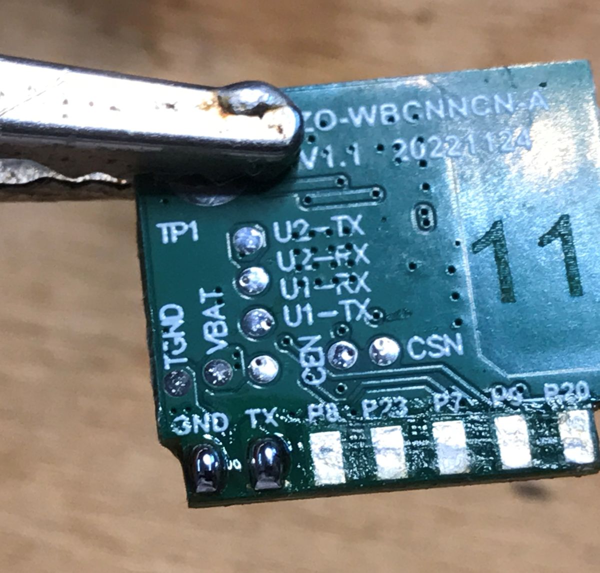 To upload our open-source firmware this serves our flasher , it too can detect the GPIO configurations of the device. You will need a USB to UART converter. You need to get to TX1/RX1 of the Beken chip, it is best to solder out the whole module to be sure. I use flux and braid for this. The flux makes it easier to melt the binder and the braid allows us to collect it and clean the pads.