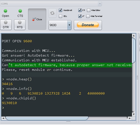 Hello i have a problem with my ESP once i got the chip i uploaded the latest software 0.9.6 everything uploaded without a problem.Now using the ESP config program i wanted to configure it but the chip doesn't respond at all to at commands it only pops up AT+CWMODE? stdin:1: '=' expected near '+' . Using ESPlorer there is also a lack of response to AT commands sometimes after several minutes the chip responds to which commands ??