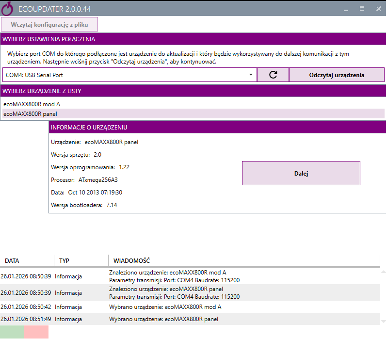 Yes. Copy the *.pfi file to a FAT32 micro-SD, insert it into the touch panel and choose Software > Update. Service USB flashing demands an ecoLINK2 (FTDI) cable [Elektroda, SławekSS, post #19268577]