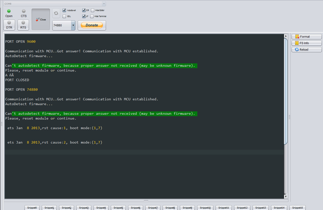I would add that programming with FlashDownloadTool is impossible because 74880 cannot be set in it.