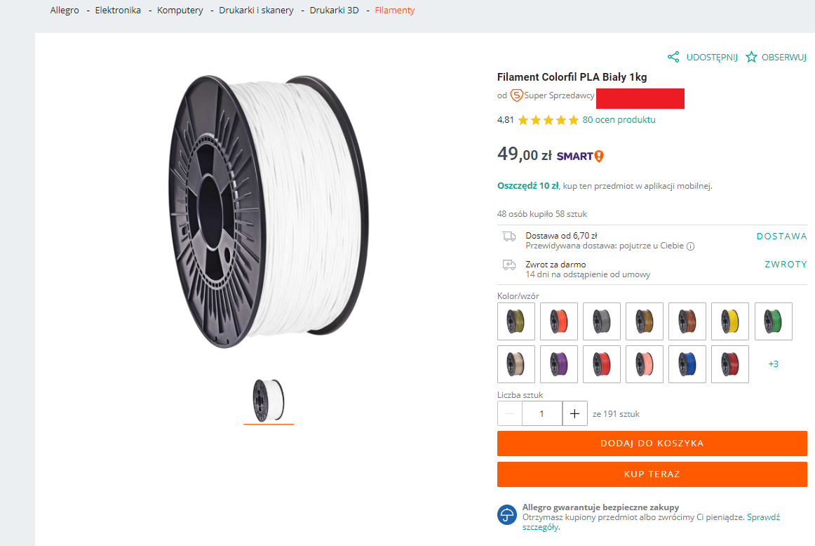 From 1kg spool we have 1000/20 = 50 boxes for 50 zł + shipping of filament + electricity, so one box costs just over a zloty .