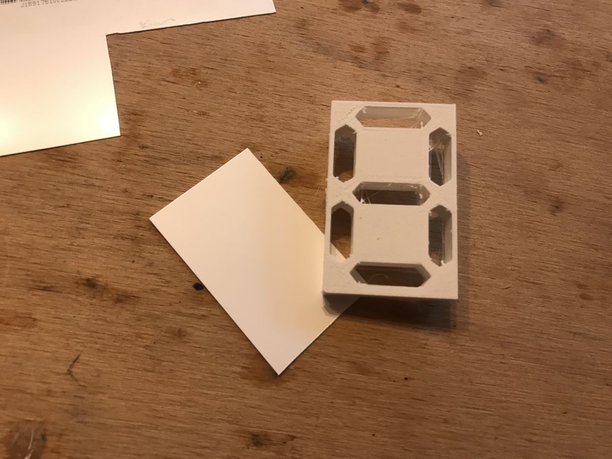 - this 3D printed element could be printed with more infill or thicker, because a little bit of its side walls let the light through and they should not