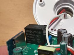 The relay JZC-32F 005-HSQ (10A 250V) immediately catches the eye. The heart of the system is also immediately visible, i.e. the WiFi module with an antenna on the PCB: