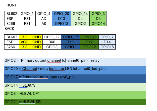 GPIO20 = Channel / relay indicator LED (channel0_led_pin)
