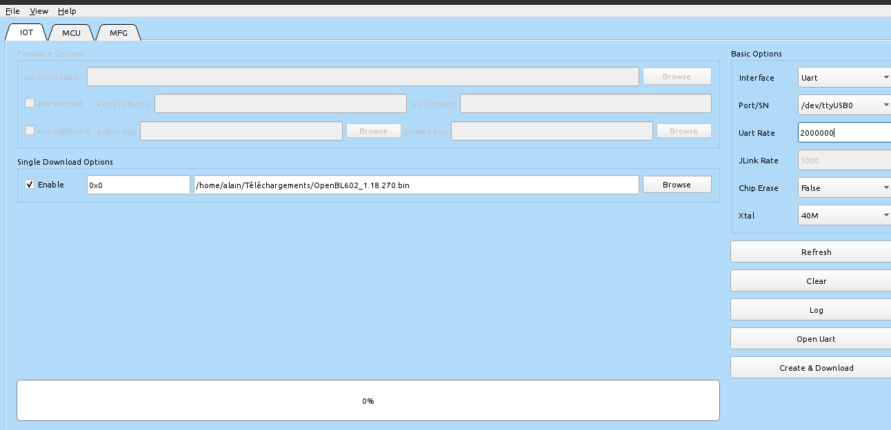 More difficulty’s I had to find the proper software to flash the chip. Finally found the tools inside the SDK.