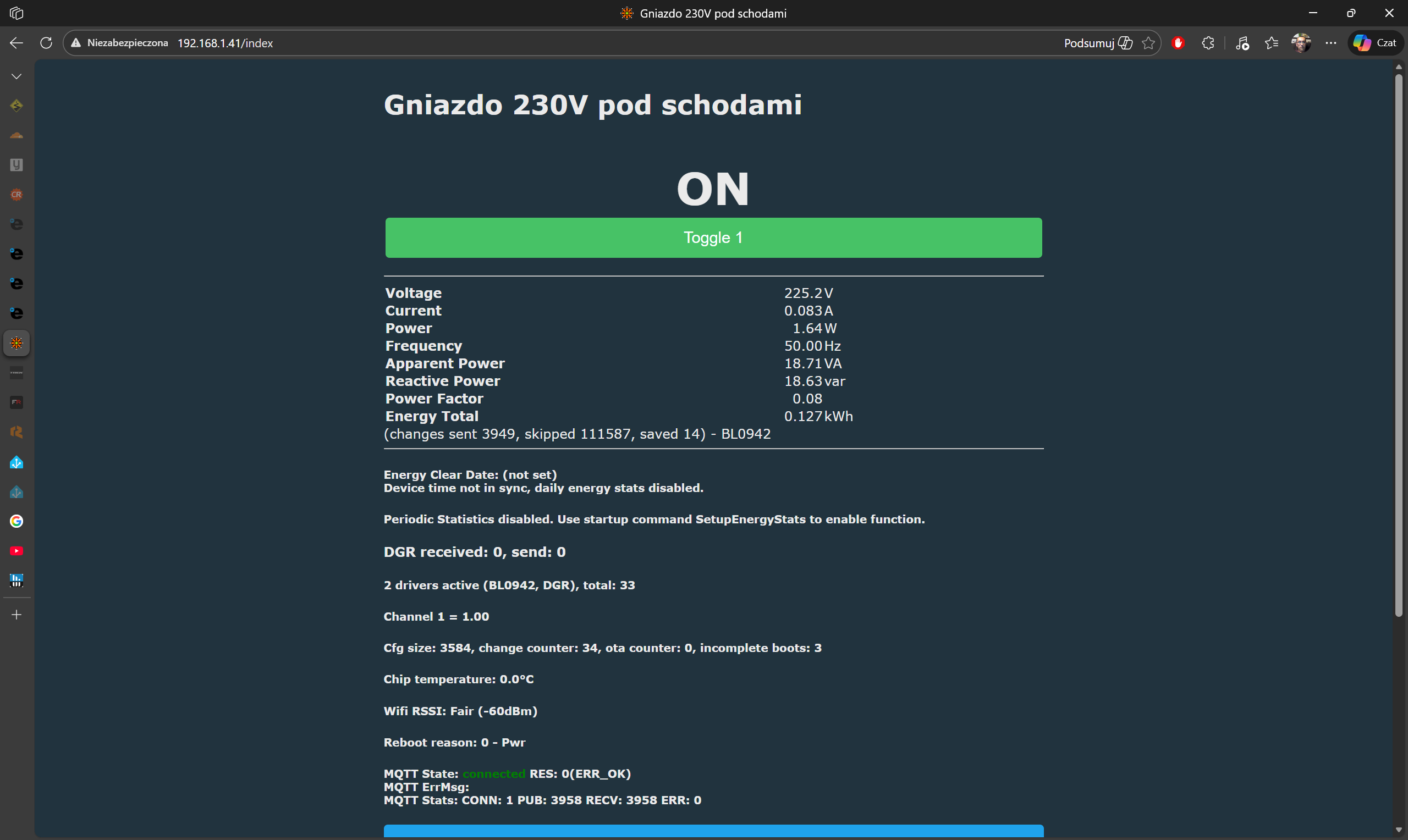 I have just started playing with IoT, I bought two WiFi sockets with energy metering. One of them I reflashed on openbeken 1.17.419.