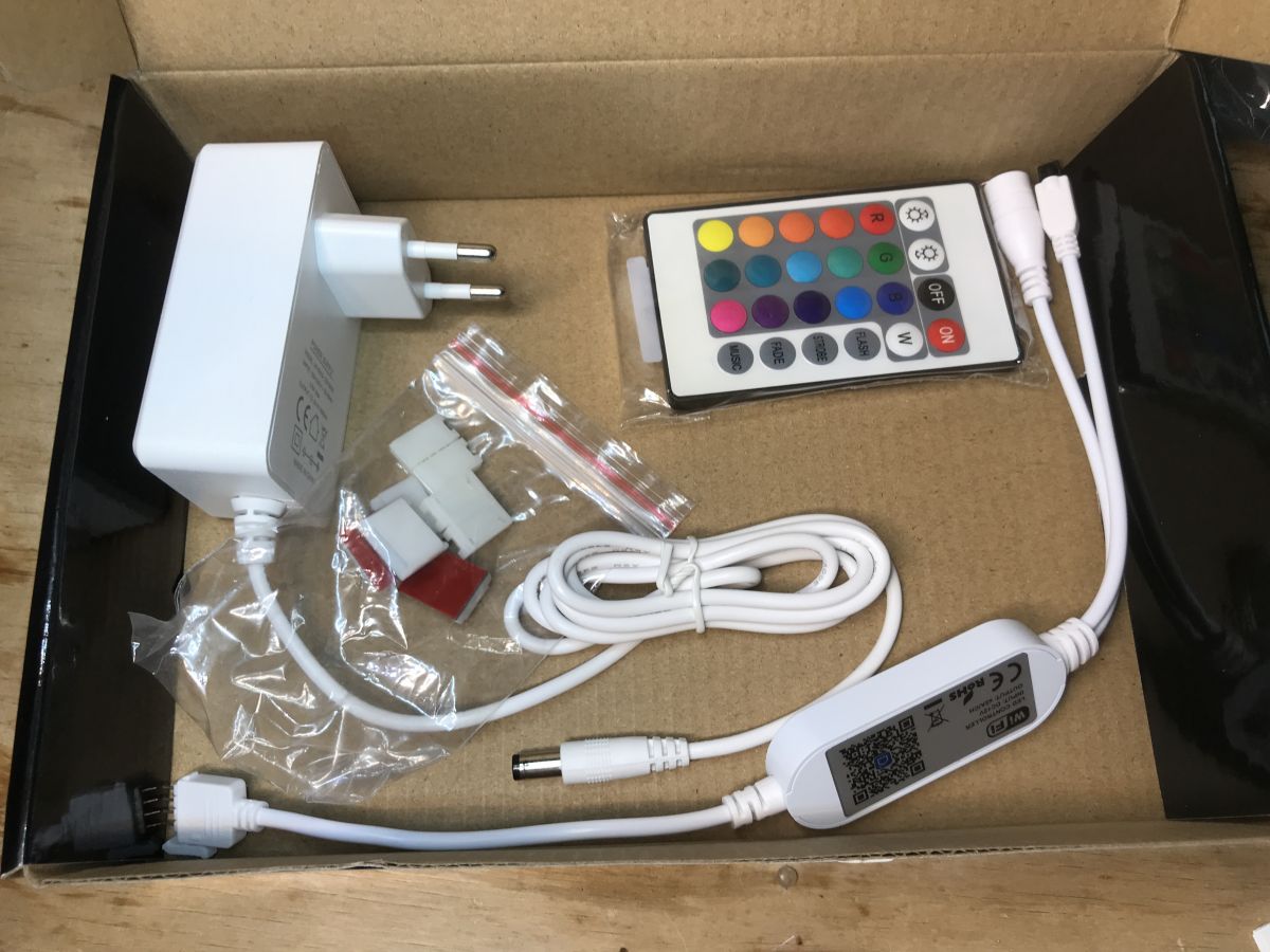 Today I am presenting a full set with an RGB LED strip, a controller based on the W302 WiFi microcontroller, a 12V JKY0918-1201500E power supply and a remote control. In this topic I will show both the inside of the controller (I will also download its input from the memory chip via SPI) and the power supply.