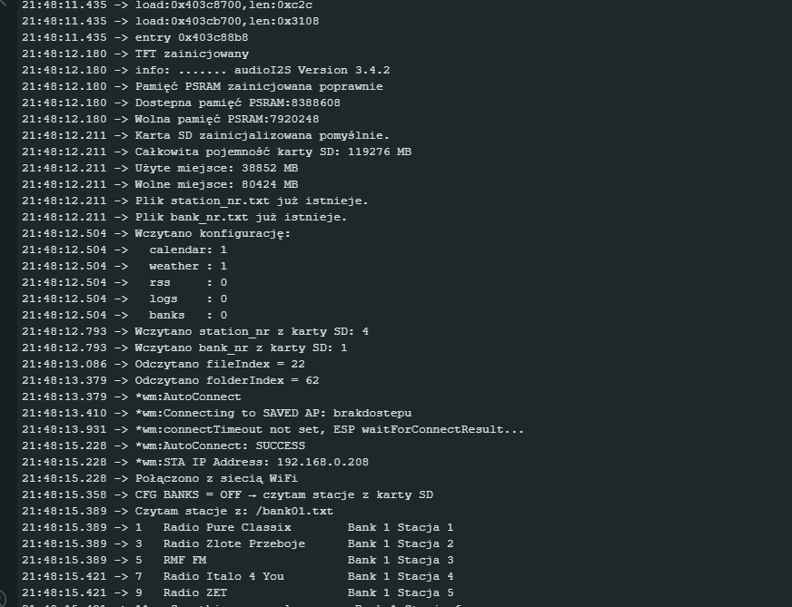 • Station banks: 1–15; up to 100 URLs each, fetched from GitHub on power-up [Elektroda, MAJSTER XXL, post #20998118]