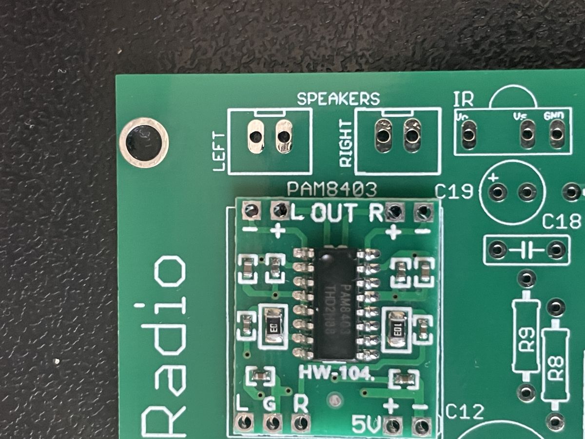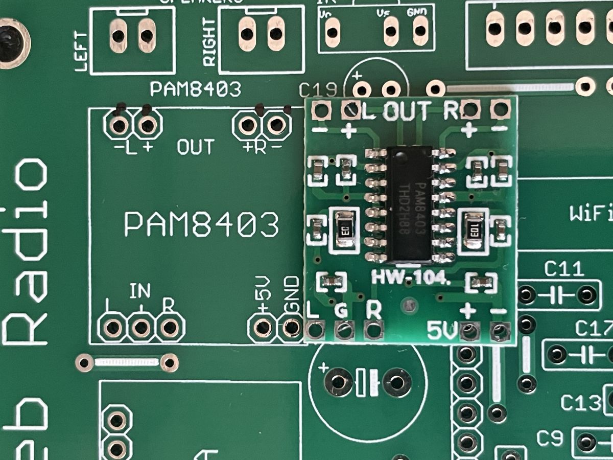 I'm thinking of changing the PAM8403 to an amplifier with a digital i2s input which should eliminate buzz and other noise, it has a standby option, if Robgold sacrifice one GPIO to control the amp then you have a ready made circuit to switch off the amplifier along with the radio.