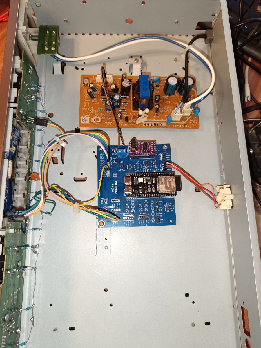 • Core: ESP32-S3-WROOM-1-N16R8, 240 MHz dual LX7, 16 MB Flash, 8 MB PSRAM [Elektroda, MAJSTER XXL, post #20998118] • Display options: 2.42” 128×64 OLED (SSD1309) or 3.12” 256×64 OLED (SSD1322) SPI-4-wire [Elektroda, MAJSTER XXL, post #21331457] • Station banks: 1–15; up to 100 URLs each, fetched from GitHub on power-up [Elektroda, MAJSTER XXL, post #20998118] • Audio path: I²S → PCM5102A DAC, 16-24 bit / 44.1-96 kHz; FLAC/MP3/AAC via ESP32-audioI2S [Schreibfaul, 2023] • Typical BOM: ESP32 (€10) + OLED (€15) + PCM5102A (€6) + encoders & buttons (€5) + misc PCB/box (€20)