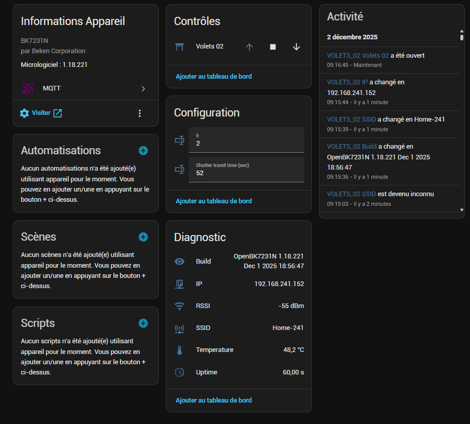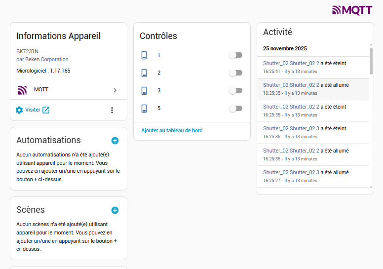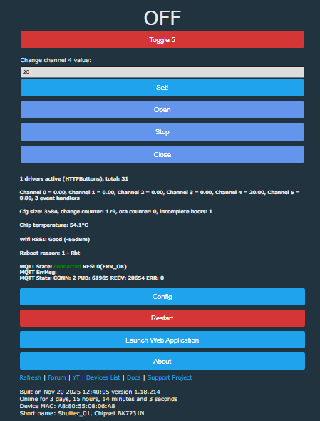 - Thank to the community, MQTT commands can use script aliases to open and close shutters