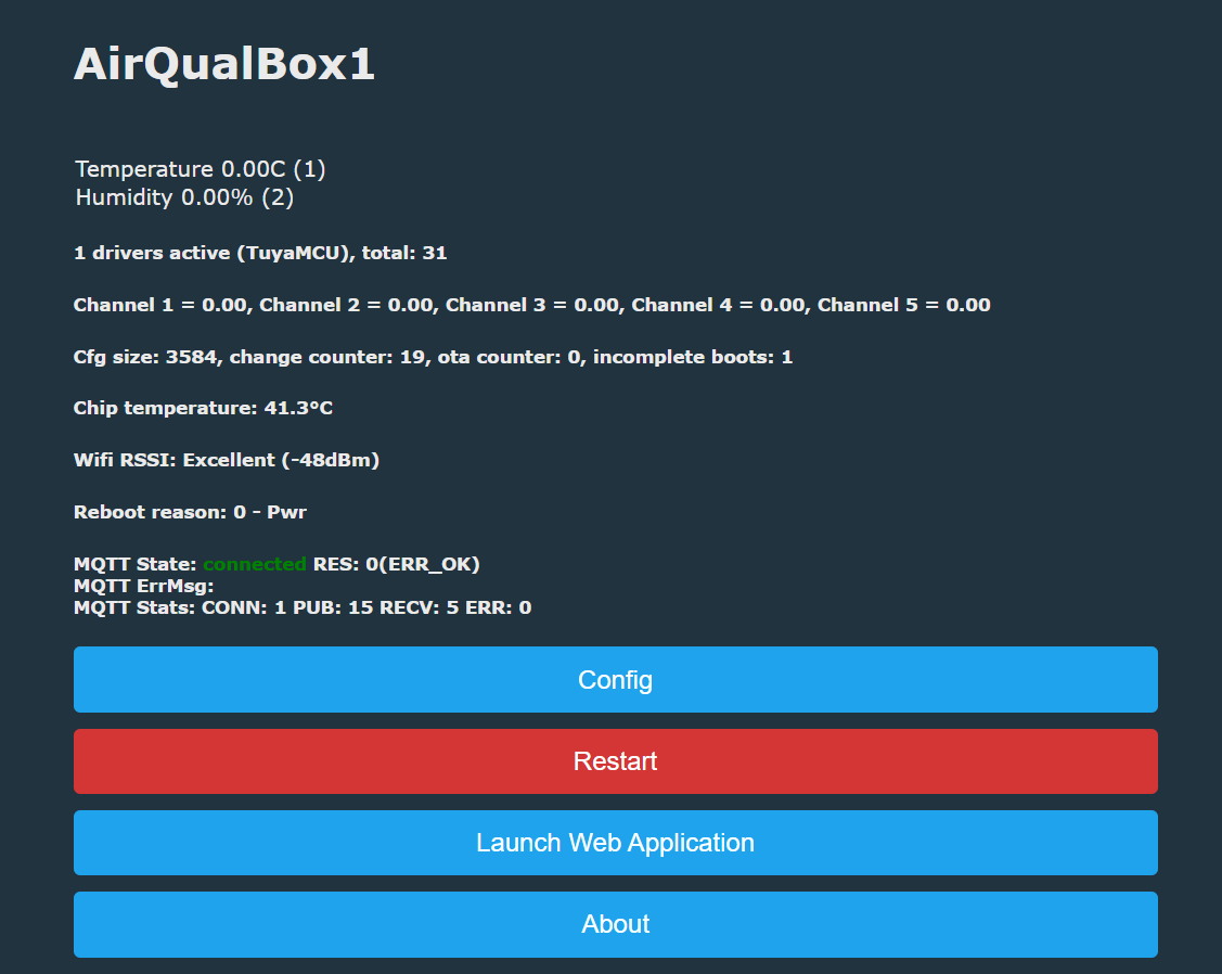 Most AirBox units talk at 9 600 baud. Add tuyaMcu_setBaudRate 9600 or let auto-detect handle it on 2 MB flashes [Elektroda, p.kaczmarek2, post #21171036]