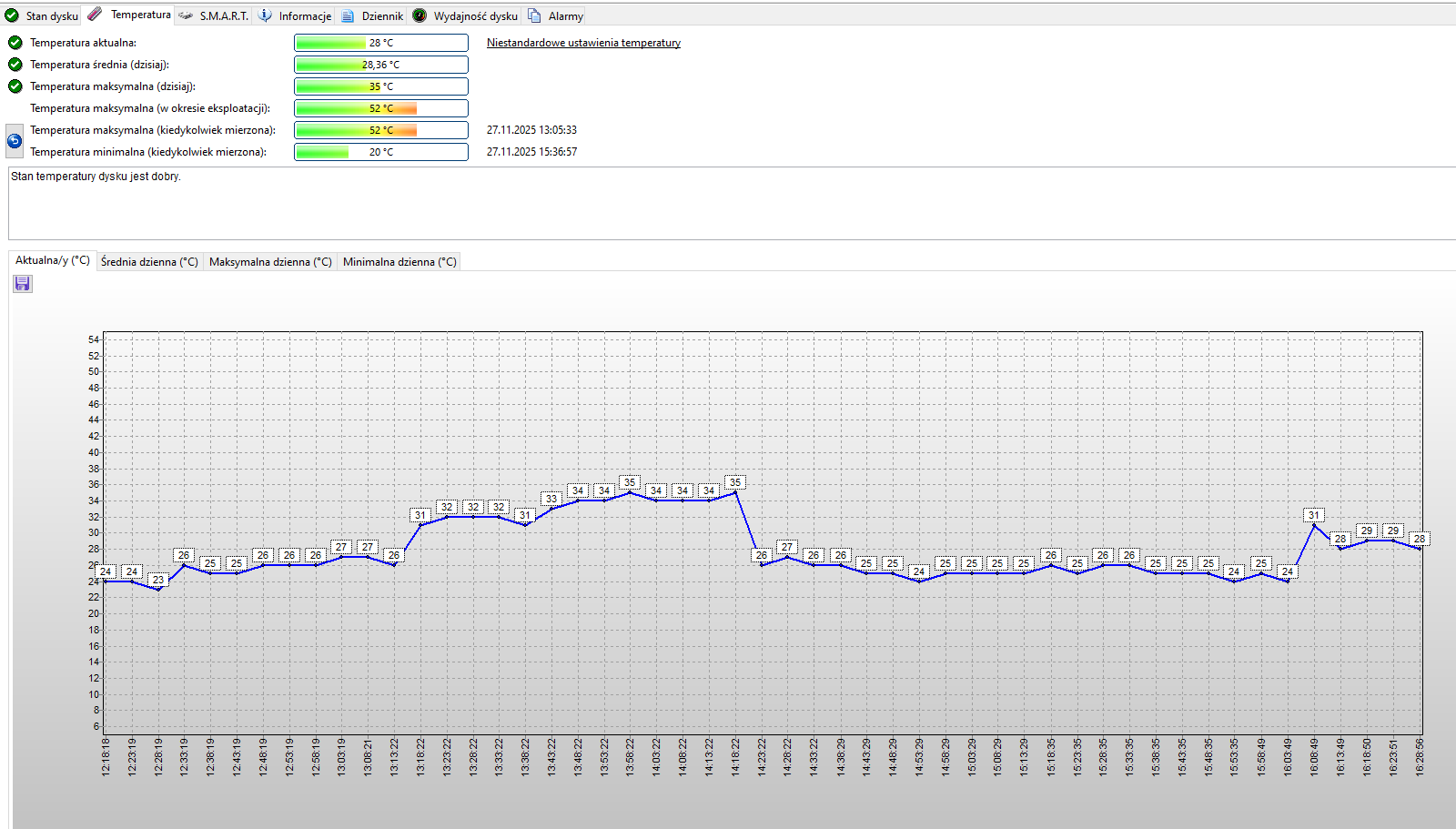 I used AIDA to monitor the temperatures, and this program gave me one surprise - after 5 hours of testing I suddenly started running out of RAM, and the task manager showed that AIDA was taking up over 40GB.... I momentarily aborted its process, and took this snapshot as a reminder: