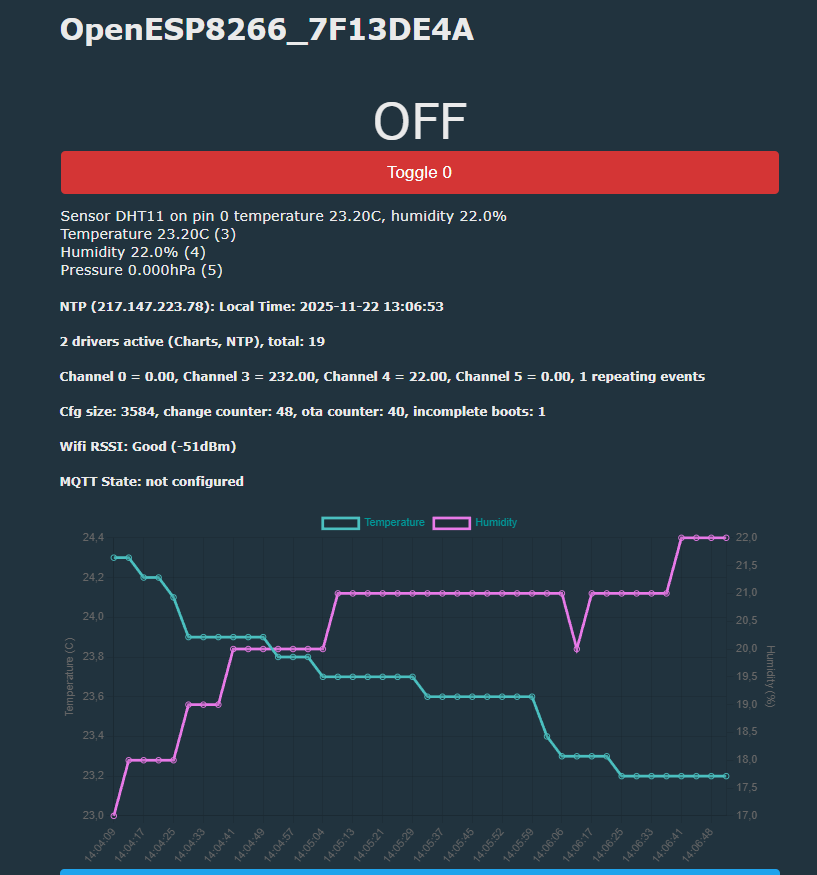 TL;DR: One 48-sample, 2-axis chart adds ≈3 kB RAM load while free heap stayed >30 kB during 9 000 s uptime [Elektroda, divadiow, post #21244441] “Trust me, being able to run OBK on Windows is a blessing” [Elektroda, p.kaczmarek2, post #21224744]