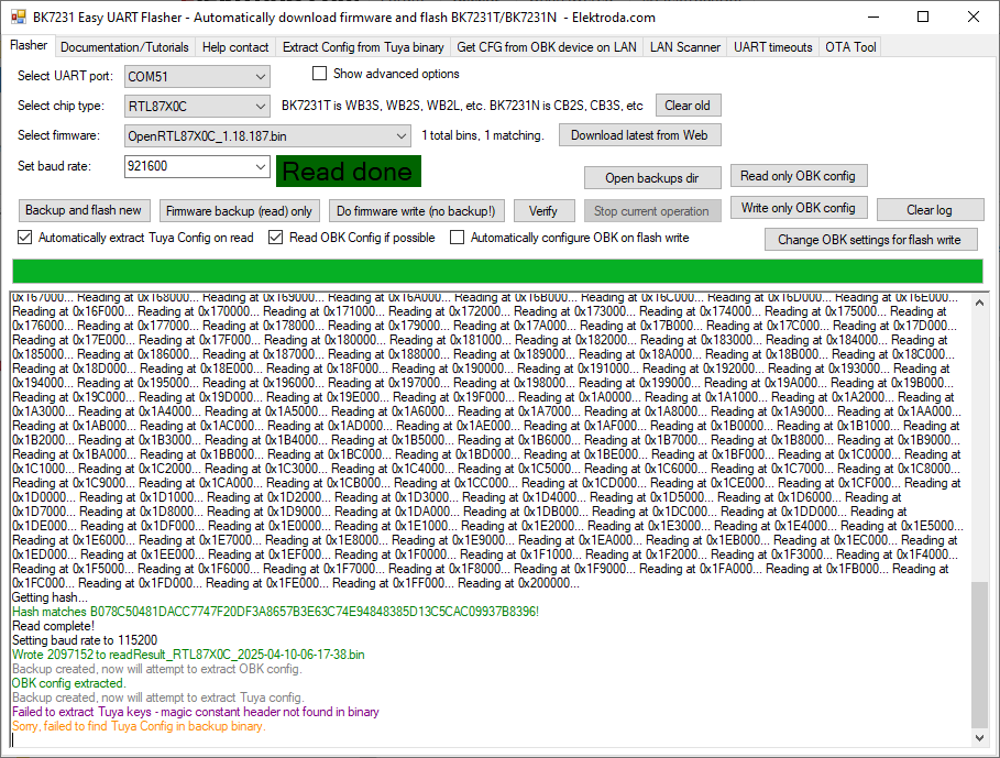 just playing with https://github.com/NonPIayerCharacter/BK7231G...mmit/83f360bb637862bbb9292d446c0c4b1b04951b6c and Z2 read again