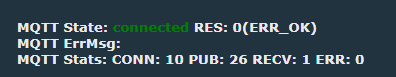 Info:MAIN:Time 64, idle 0/s, free 73063, MQTT 0(0), bWifi 0, secondsWithNoPing -1, socks 2/8
