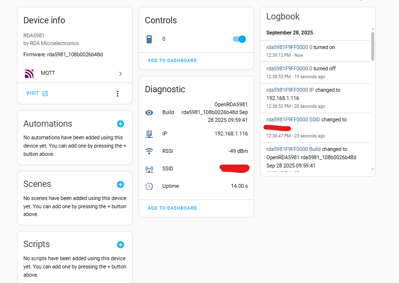 Info:MAIN:Time 5, idle 0/s, free 73175, MQTT 0(0), bWifi 0, secondsWithNoPing -1, socks 2/8