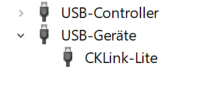 USB device list showing CKLink-Lite under USB devices