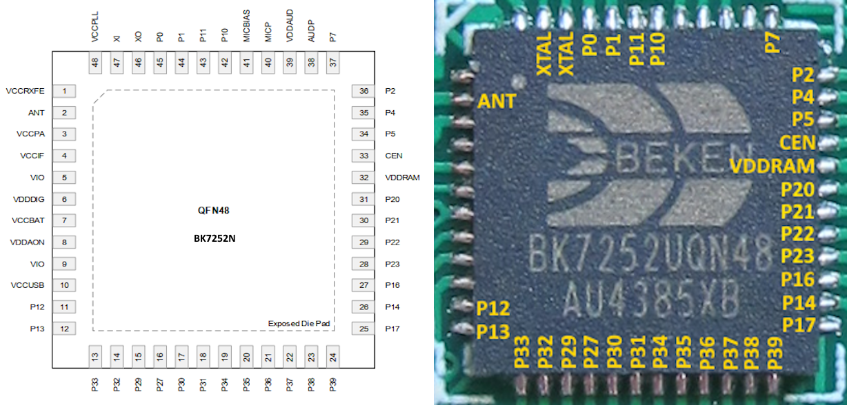 - Firmware: OpenBK7252_QIO__7231u_t_c1b0ac146bf0.bin boots OBK; the Tuya_QIO variant boots BL only. [Elektroda, divadiow, post #21557995]