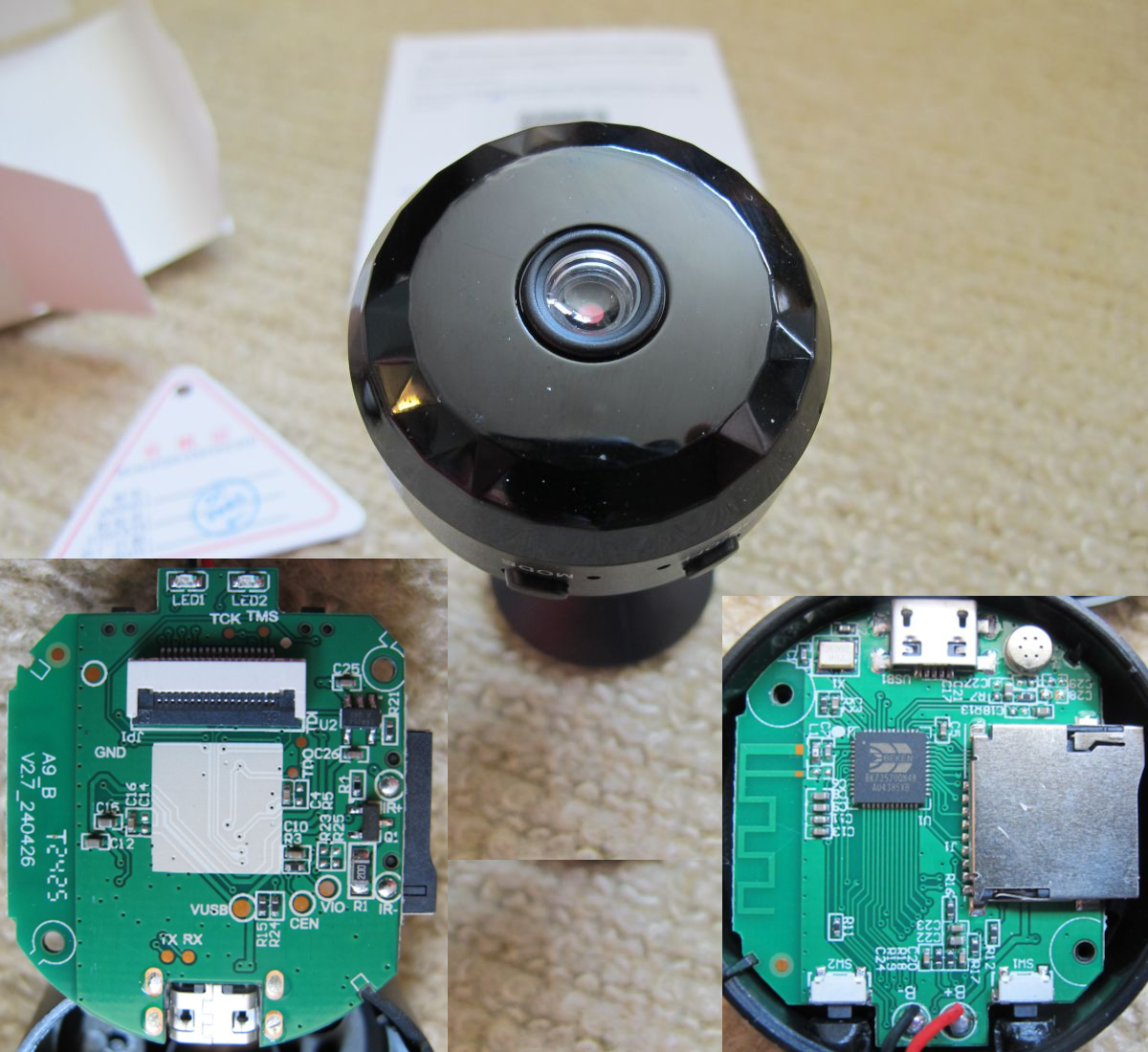 Here's another BK7252U cam but this time its beating heart is the 48 pin BK7252UQN48. The usual claims of HD 1080P, night vision, Xiaomi, are seen on the Ali page from which it was bought