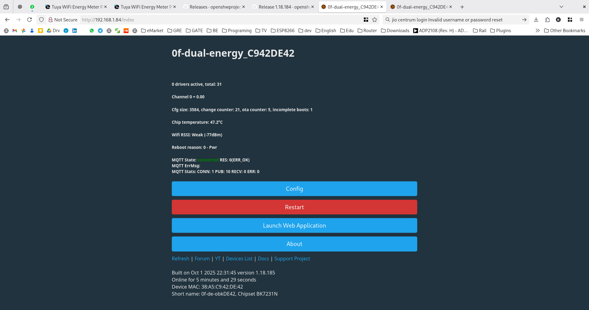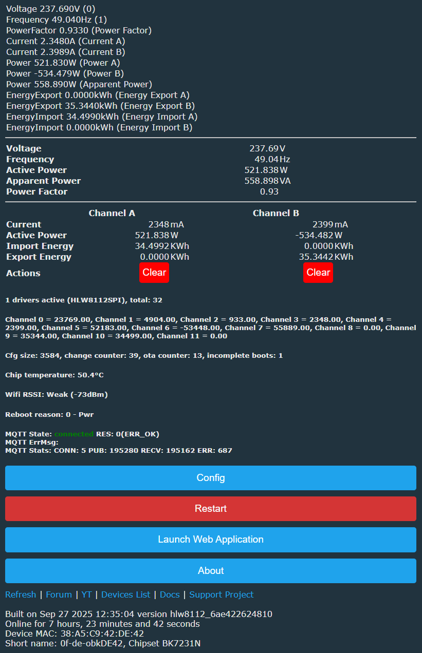 - Backup and restore firmware causes wrong measurement, but subsequently I discovered that all power values are reported in a ratio 1:5