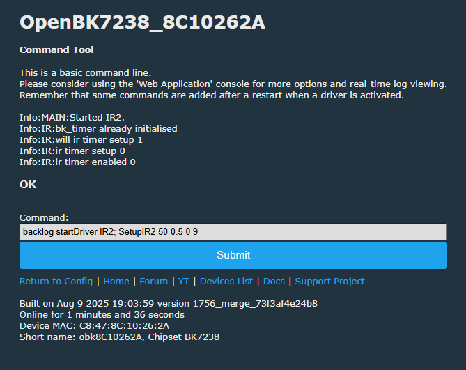 Quote:Remember that OBK has two different IR library versions - it can be helpful if you want to use more rare protocols.