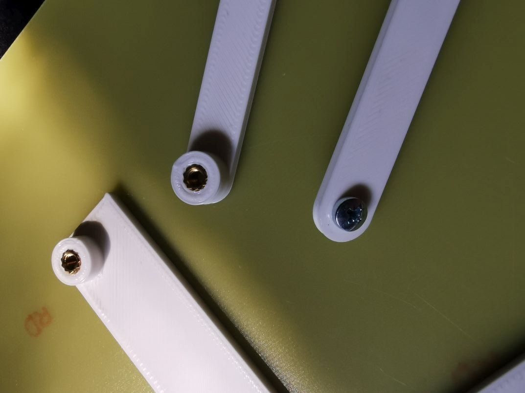 The arms are connected by sunken inserts with M3 threads.