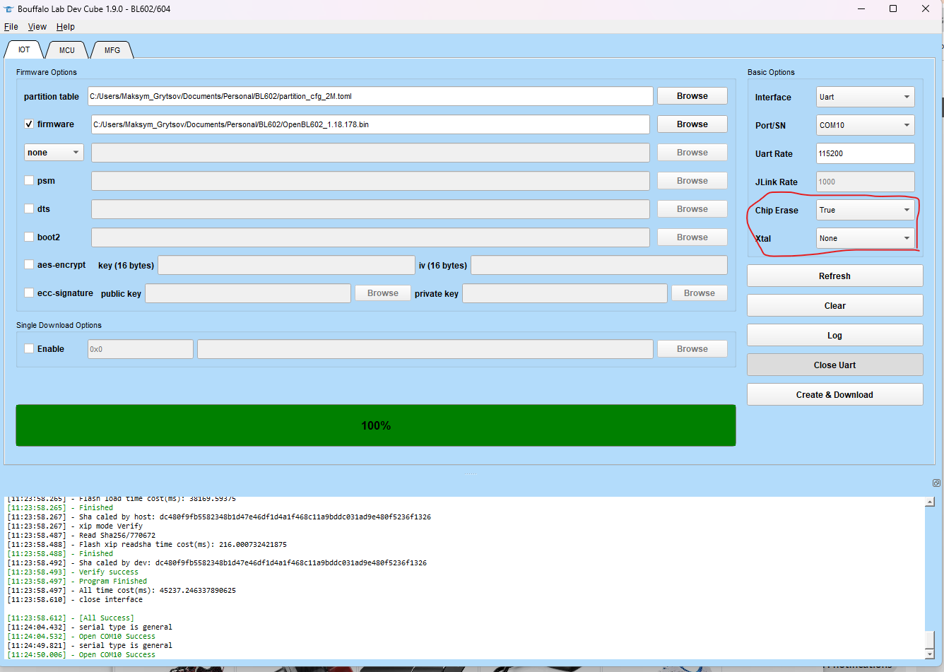 AI: Can you share more details about how you flashed the OpenBL602_1.18.164.bin firmware—what tool and steps did you use, and did you see any errors during the process?