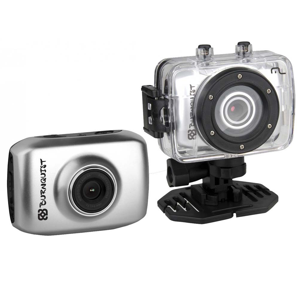 If you don't want to destroy the integrity of the case, then all you will be able to do will be to operate the "shutter" button. A small motor or solenoid could be mechanically adapted to to push the button down(a cam on a motor shaft for example). A motor would be better, since you wouldn't get a sudden mechanical movement, which could cause camera shake.