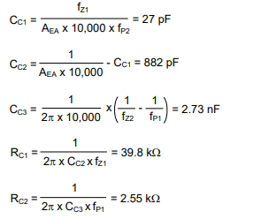 Its mentioned in the data sheet that the calculation can be made using the equation given but didn't tell on how to get the Fz1, Fz2, Fp1 and Fp2 where these value that can decide the components.