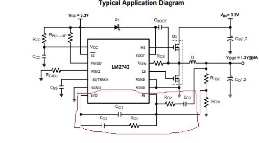 From there I'm quite stuck on how to do it. Where I know the T.F for PI controller is Gc(s)=Kp+(ki/s). After that, lets say I've managed top design the PI controller. From datasheet LM2743, there are few components need to be connected to the main controller which is pin FB and EAO.