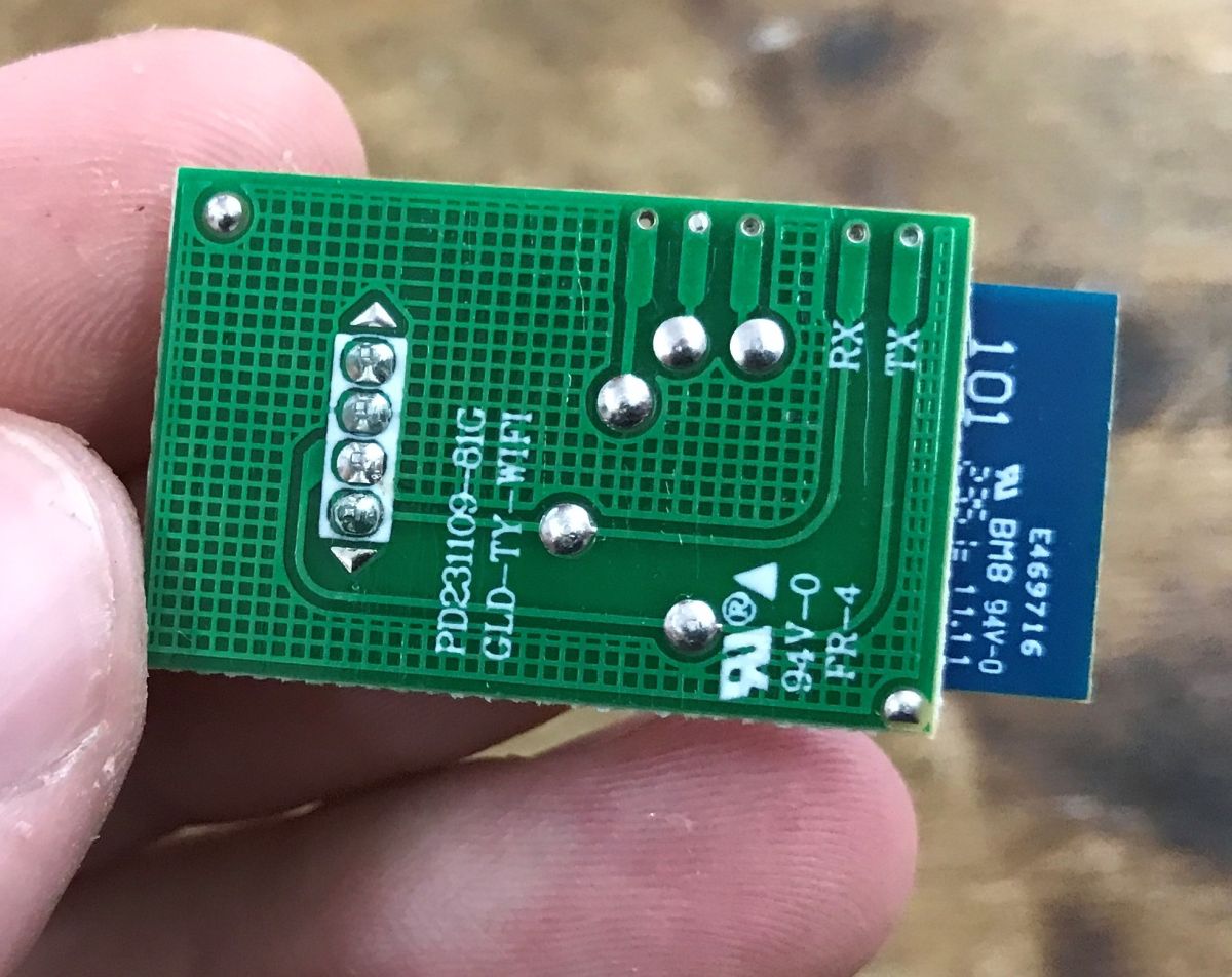 The module with the display has two buttons, and four signals go from it to the kettle handle. The GND, 3.3V and RX and TX designations suggest TuyaMCU.