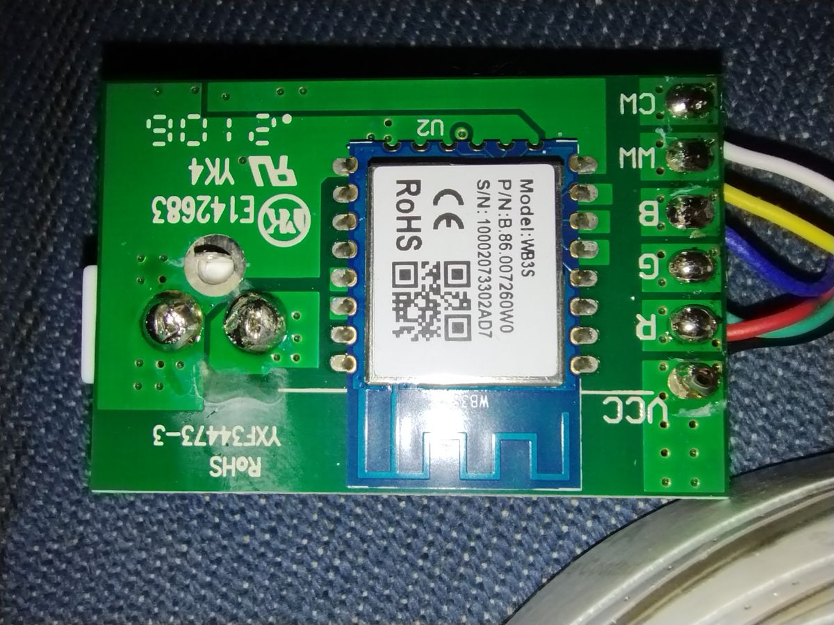 I used a ch341a to connect to these pins on the module. I was surprised to see that the bottom still had all of the labels! You actually don't need to remove the module from the main PCB; I was just curious about what the bottom looked like. I followed this guide https://www.elektroda.com/rtvforum/topic3951016.html to flash, but I didn't need an external 3.3v power supply. Maybe that's because I was plugged into a usb3 port? I use fedora linux, and I used the python script because the .net flashing application kept giving me errors on both windows and linux.