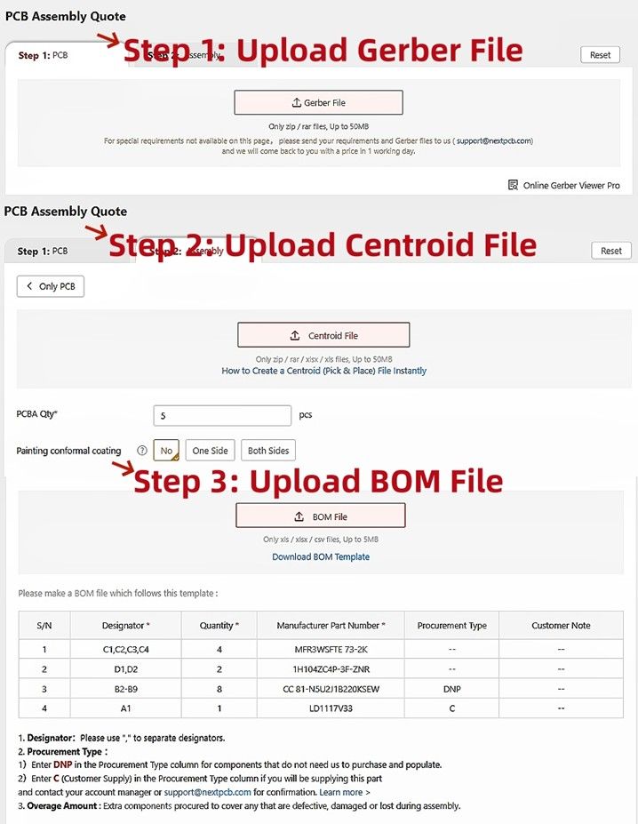 Get a turnkey PCBA quote in 3 simple steps!