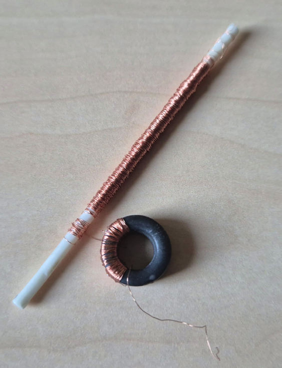 I have now accumulated a number of cores, including toroidal, which are ideal for this purpose. The biggest challenge was winding the right number of coils, which I managed to do by using the right winding method