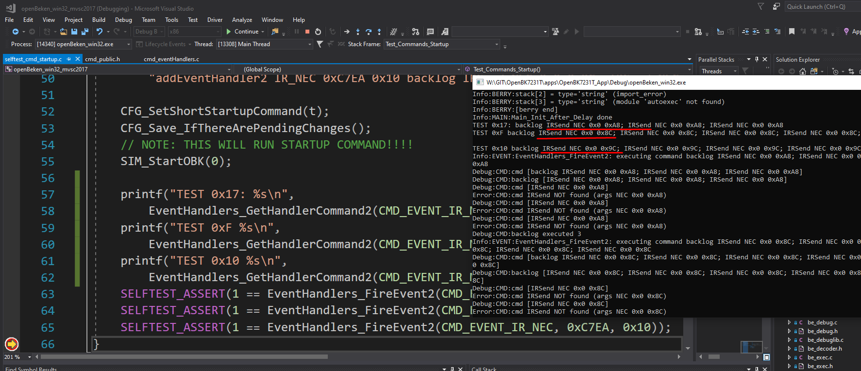 the 2nd event handler supposed send 0x8C when triggered, but instead it sent 0x9C (which is the action of the 3rd event handler). if there are 4 eventhandlers, the 2nd event handler will do the 4th event handler's action.