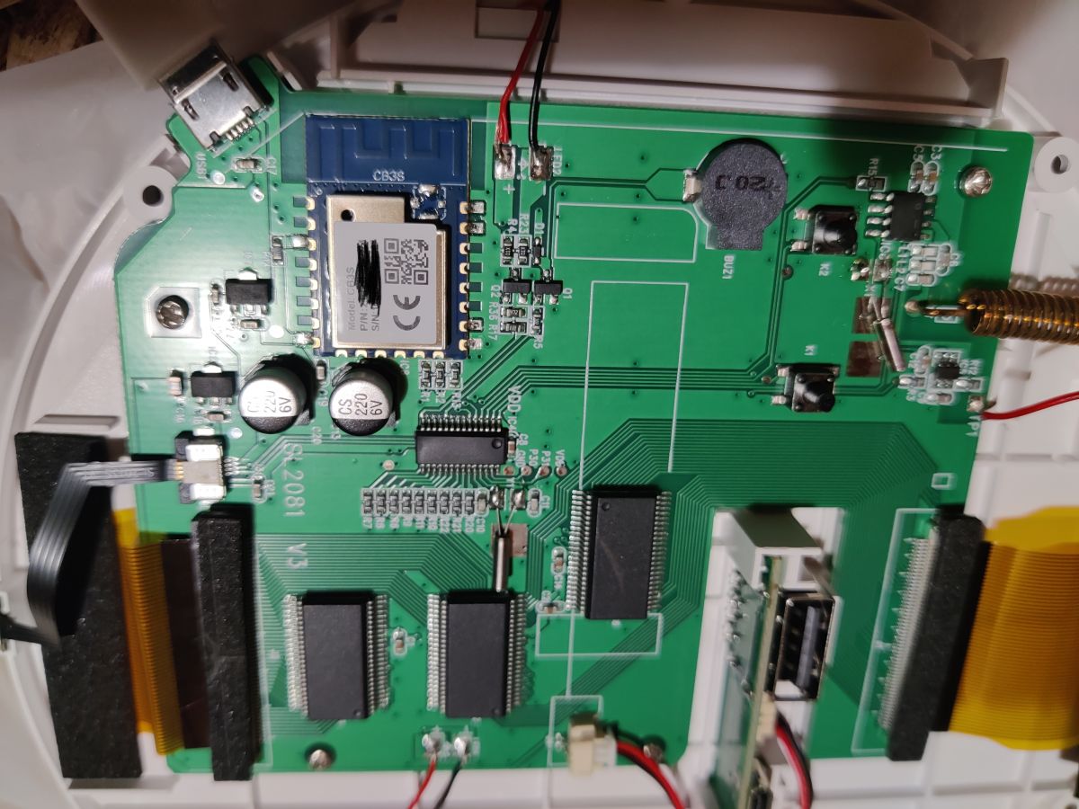 I have a problem with my Tuya Setti SMS603 weather station (twin models are: sws-s001, Blitzwolf ws02). Well, after a power outage (about 3 times in a few minutes) the station stopped connecting to the Tuya app, the Wi-Fi symbol disappeared on the screen and it fails to put the station into pairing mode (it has a physical button for pairing - you hear a sound that it should be ready to pair, but the Wi-Fi sign doesn't flash on the screen and the Tuya app doesn't see it). I managed to take it apart to see what module is inside - Cb3s. Has anyone had a similar case and managed to solve it? I am sending pictures of the station and the interior. Thank you in advance for your help 🙂
