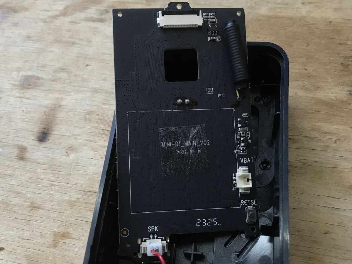 Removing the board. You can already see the XR872AT Wi-Fi chip and the second antenna on the PCB. You can also see the two quartz resonators. It can be judged that probably one chip is the Wi-Fi connectivity and the other is the RF to the module that plays the ringtone.