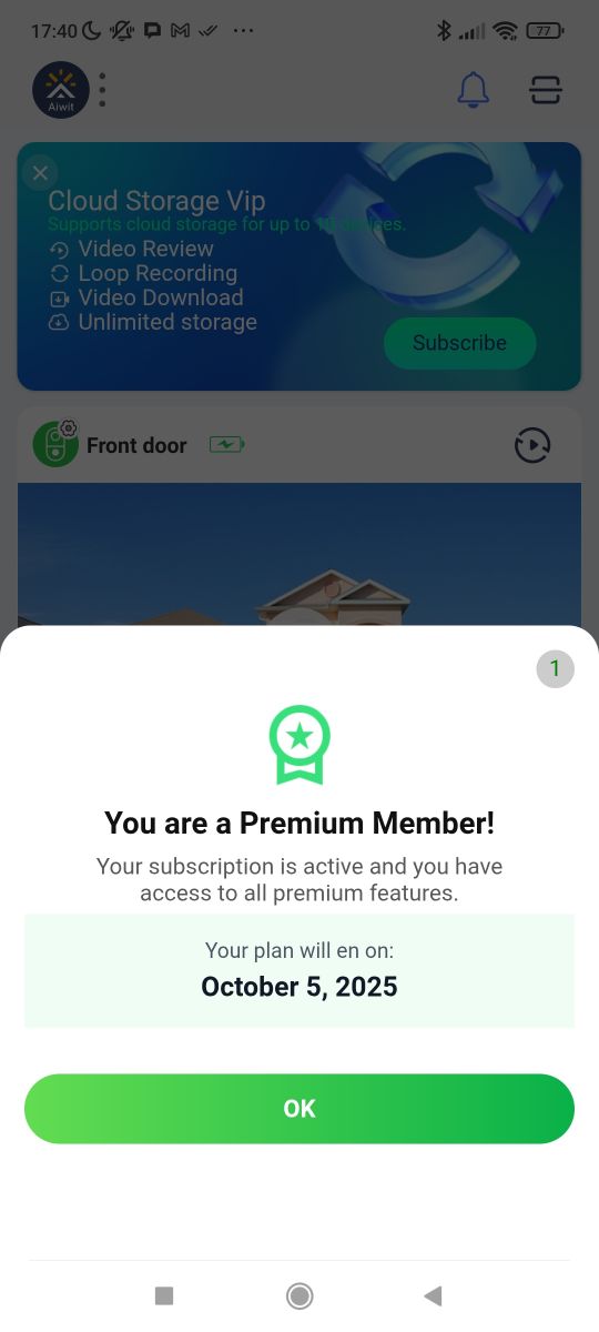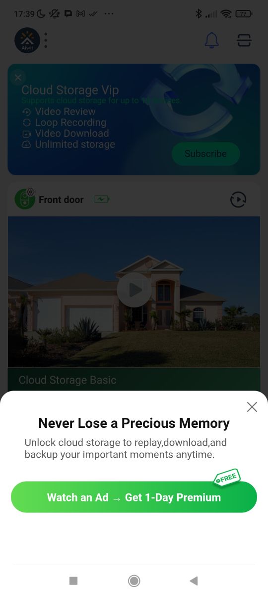 Eventually it should work - the camera connects and the app offers us a paid plan: