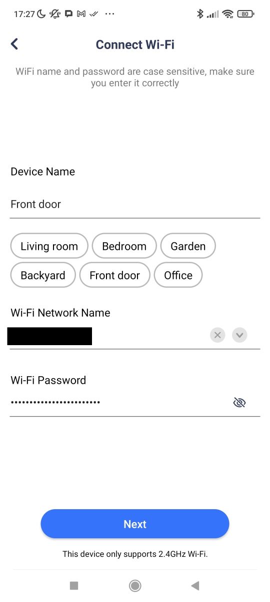 The application will ask us for our Wi-Fi details - we need to enter the location of the 2.4 GHz network.