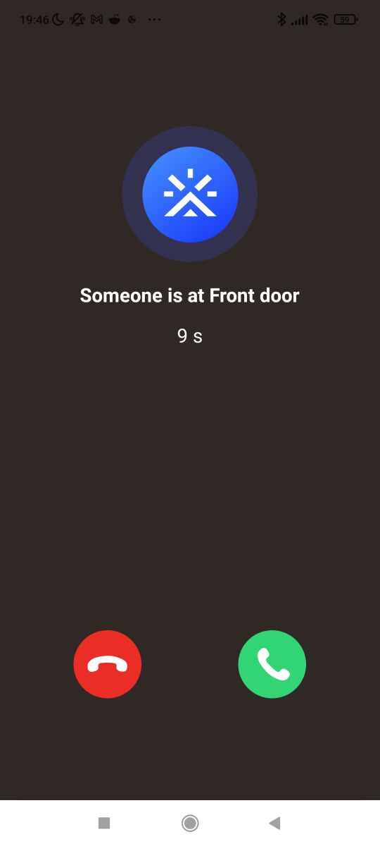 When we pick up, we can see who is ringing the doorbell. There is also an option for two-way communication. If we are late, we have a notification and video footage in the history in the app.