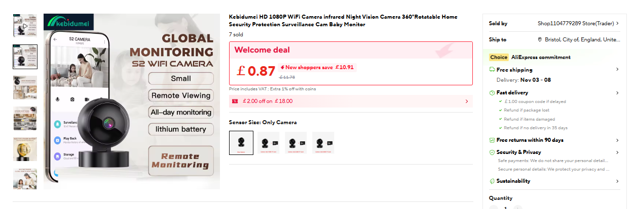 Kebidumei HD 1080P WiFi Camera infrared Night Vision Camera 360°Rotatable Home Security Protection Surveillance Cam Baby Monitor