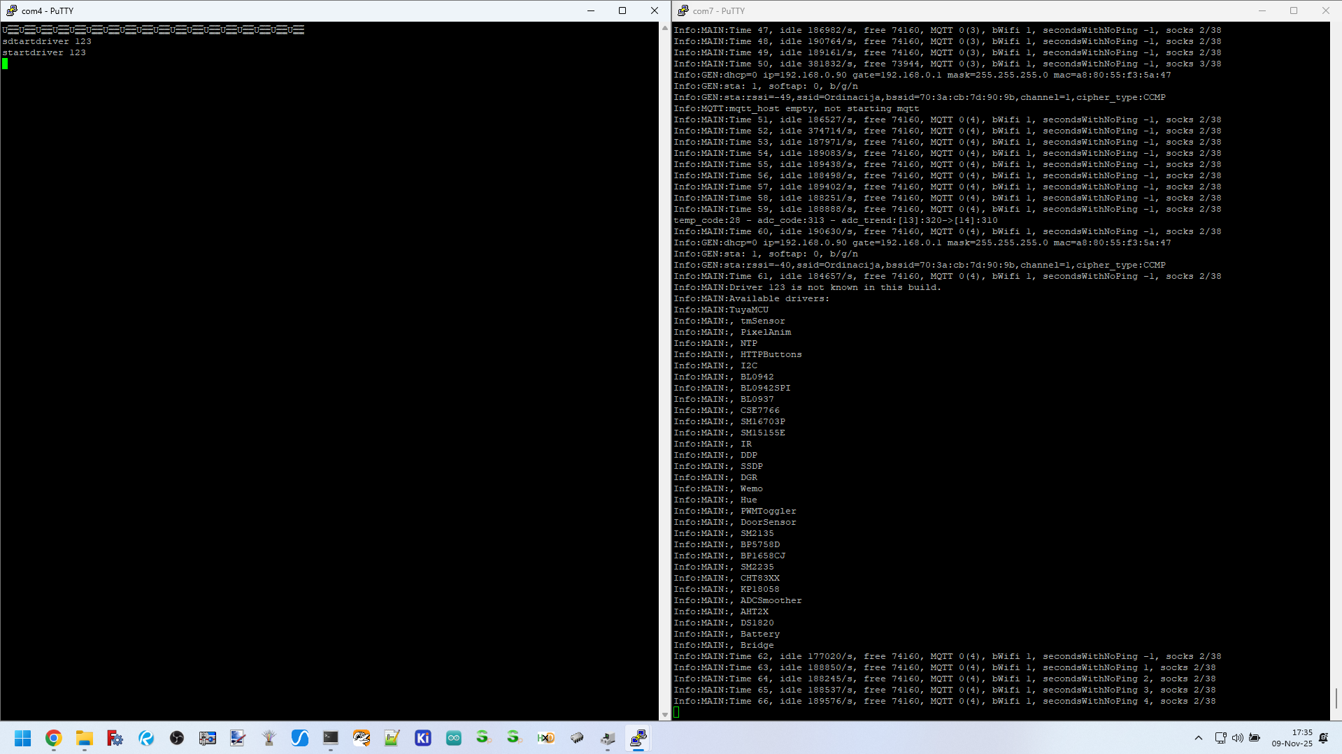 In any case, the UART works fine - the computer immediately sees the COM ports, here for example COM4 and COM7 and we can operate them via Realterm: