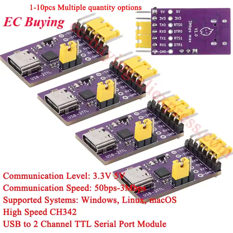 Looks like we're in for an additional 3.3 V LDO hand-soldering to the underside of the board shown. How about finding a module with CH342 and AMS1117-3.3? That would be the best option.