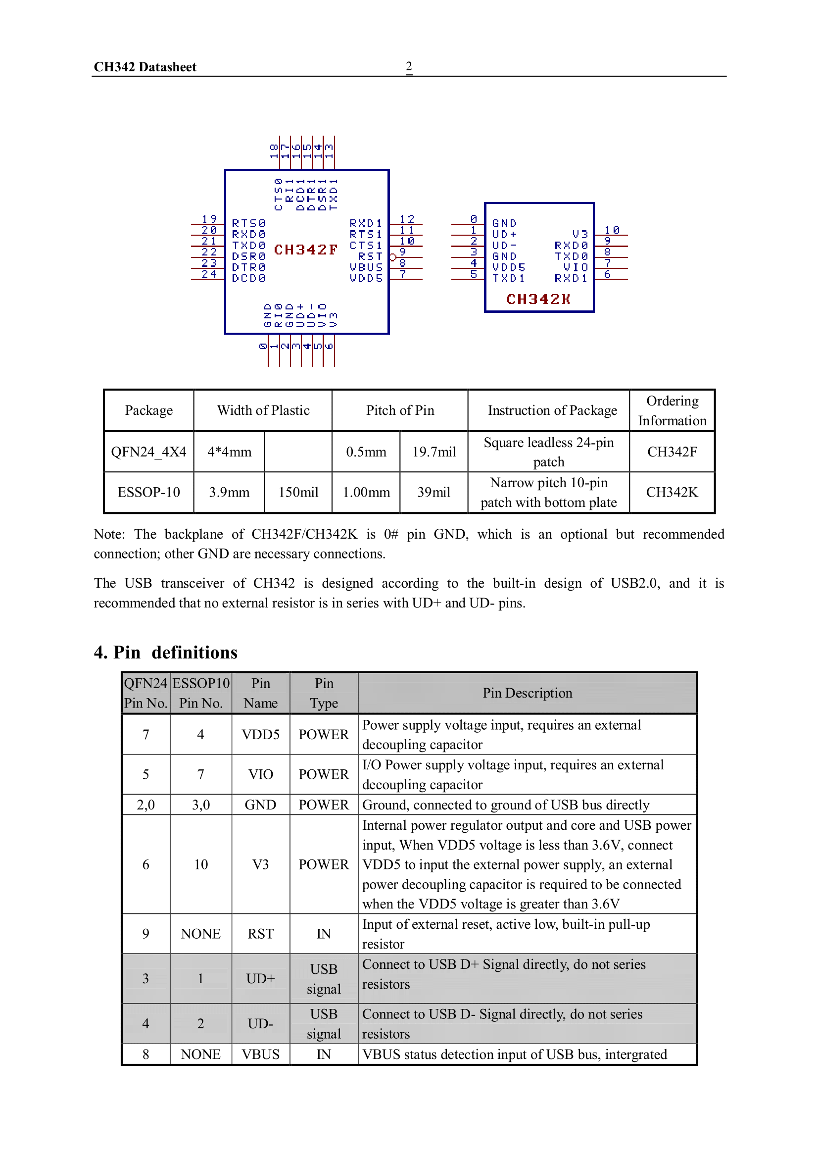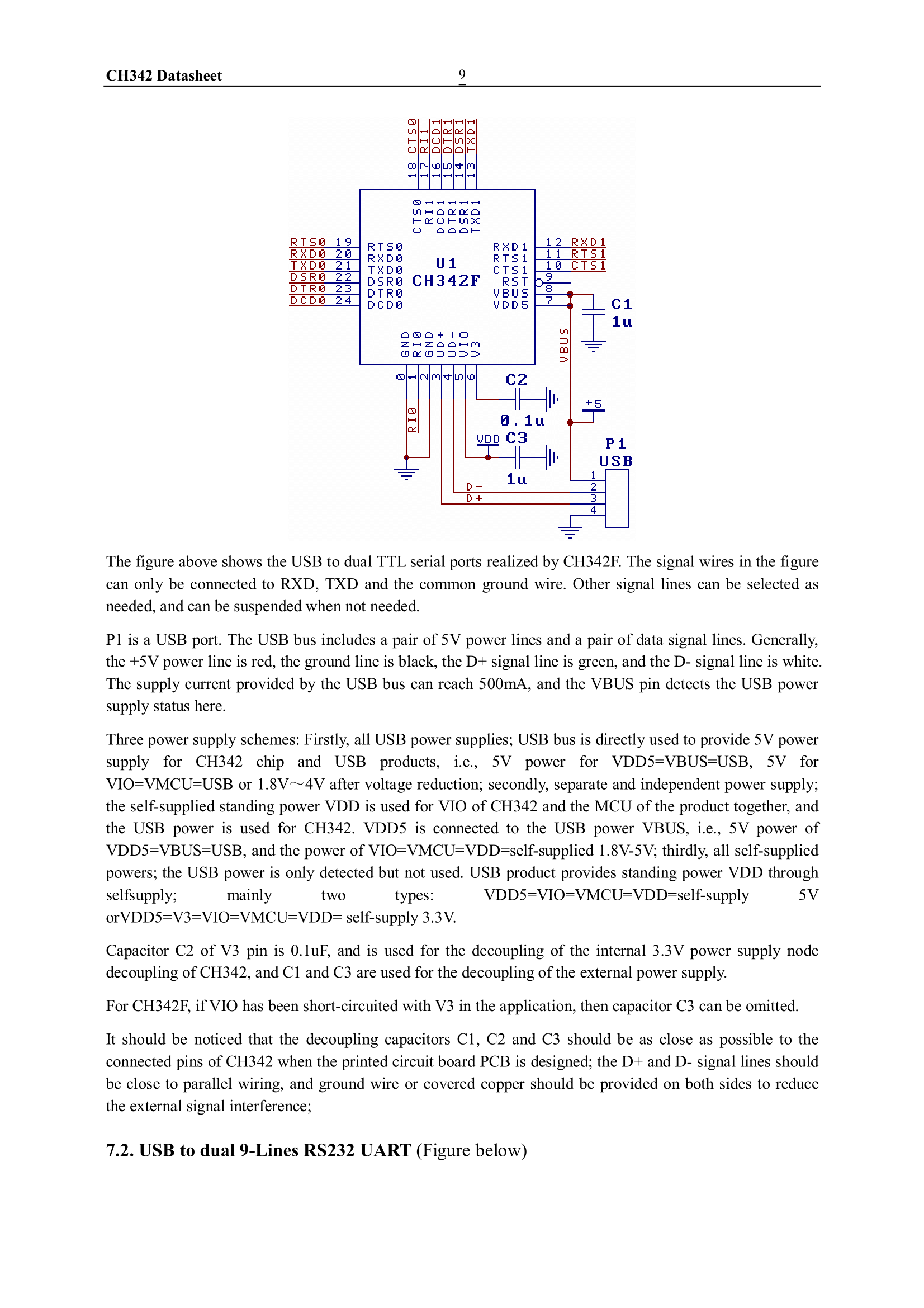 The CH342 itself is available in tiny housings such as QFN24 (CH342F) and ESSOP-10 (CH342K). The CH342 requires minimal external components to operate.