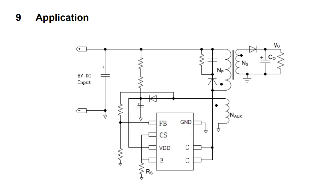 This is the simplest flyback converter controller with an integrated keying transistor and feedback taken from the primary side. There is no support here for any of the higher voltage supply standards.