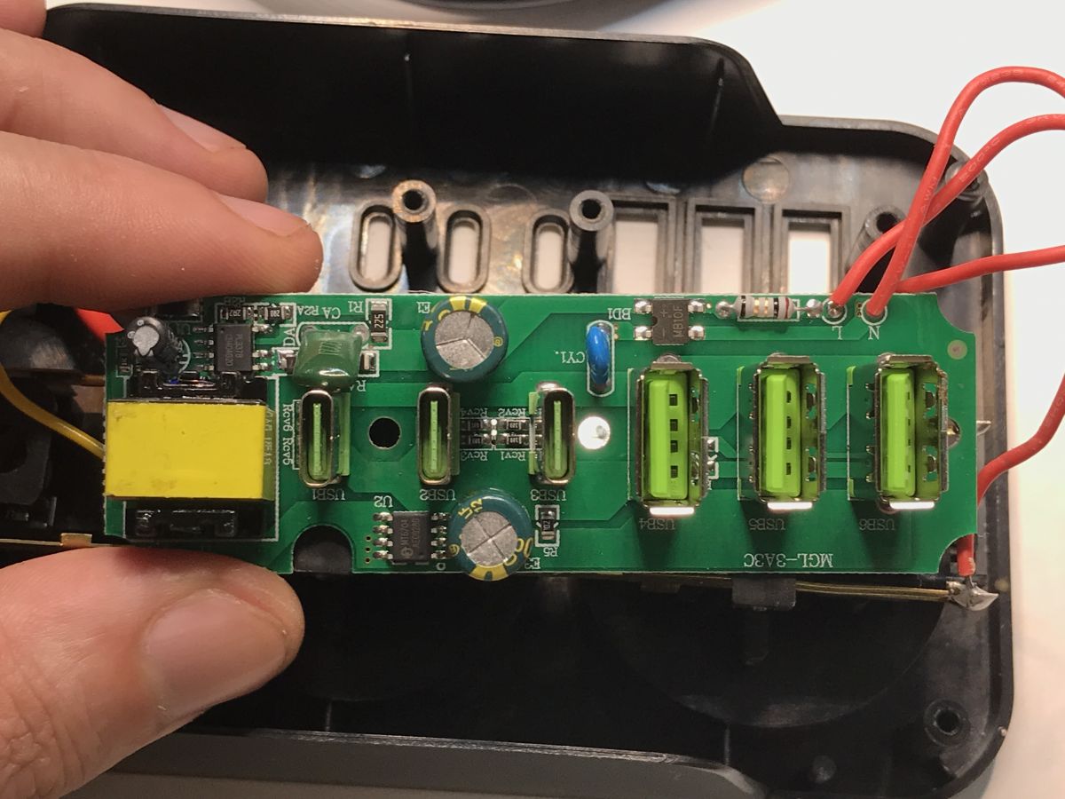 Already at this stage I can see that all the USB ports are on a single ground and power line - 5 volts.