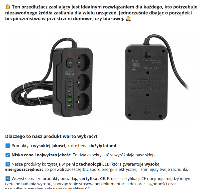 In this topic, I will present two products from the same series - SmartLED 8152 (5 x USB, 5 x 230V) and SmartLED 8110 (6 x USB, 3 x 230V). Both cost around £35 each, which is suspiciously cheap, but they do have USB C, which might seem like a good bargain. Just does the presence of a USB C socket equate to support for fast charging standards such as QC and PD? We shall see.